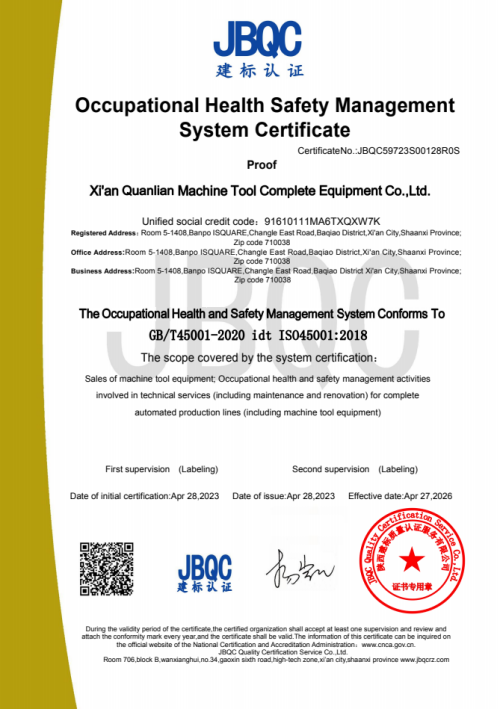 XI'AN QUAN LIAN MACHINE TOOL COMPLETE SETS OF EQUIPMENT CO., LTD.